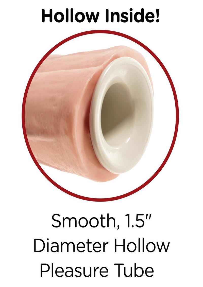 When size matters and youb re looking for a one-of-a-kind hollow-strap-on experience, this King Cock Two Cocks One Hole Hollow Strap-On Suspender System satisfies your double dick dreams with one thick dildo sculpted from two lifelike cocks. Exquisitely handcrafted, the King Cock Two Cocks One Hole Hollow Strap-On Suspender System provides exciting stimulation and a satisfying feeling of fullness. This unique strap-on system features two heavy-duty nylon shoulder straps that easily adjust to support the weight of the husky hollow dildo, along with an adjustable nylon waist strap to fit most sizes. A durable metal O-ring holds the dong in place when the action heats up, while nylon webbing thigh straps easily adjust to hold everything together. A Velcro strap wraps around the shaft of the dildo for extra support, and four straps help secure the metal O-ring around the base of the dildo. A long, hollow plastic tube, measuring 1.5b in diameter, is placed inside the rubber dong, making it perfect for men with performance problems, though it's sturdy enough for all sexes to wear. Every vein, every shaft, every foreskin, and every head on our King Cock Two Cocks One Hole dildos are carefully handcrafted with exquisite detail to give you the most realistic experience ever imagined.
