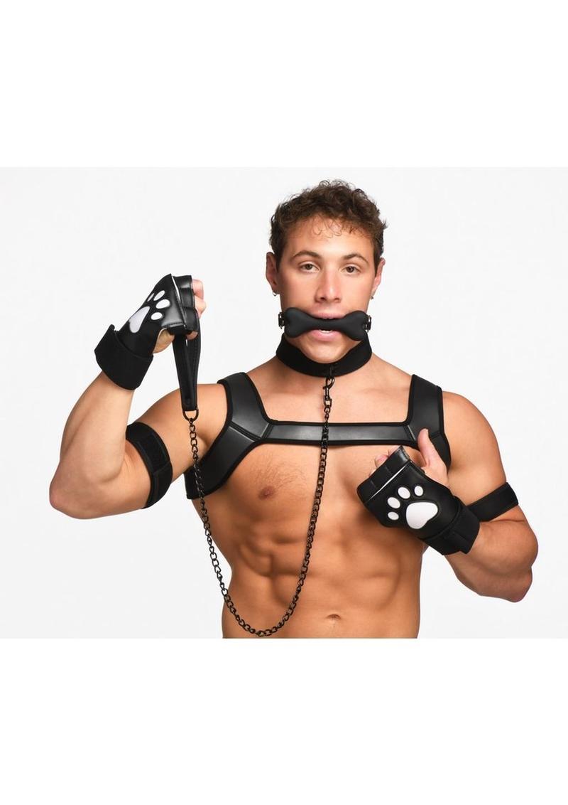 - Puppy Plug and Play: Everything you need to get started immediately! Set includes puppy hood, silicone bone gag, collar with leash, chest harness, arm bands, puppy tail, paw gloves, and doggy position strap.