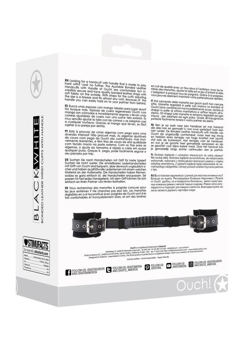 Ouch! Bonded Leather Hand Cuffs with Handle
