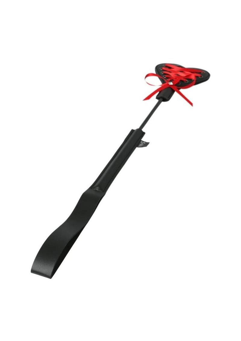 Create unique sensations with our new Heart Beat Crop. One side is smooth for spanking, stroking, and caressing. The other side features a plush red lace fabric tied up like a corsett harness and is adorned with a blinged bow. The bling adds to the sting! Use this beautiful new addition to your collection to invent your own Sex & Mischief fantasy.